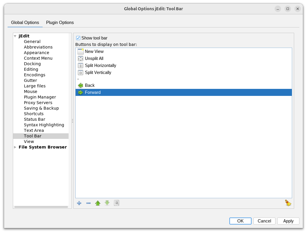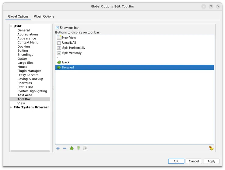 - Isabelle/jEdit provides builtin navigation support, with actions navigate-backwards (AS-LEFT) and navigate-forwards (AS-RIGHT). These actions are available via arrow icons in the Search Bar, which is now enabled by default. The old plugins Navigator and Code2HTML are now longer included. The old-fashioned toolbar, with its old Navigator icons, is now disabled by default.