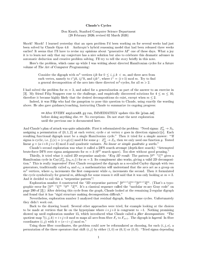 claude-cycles <https://cs.stanford.edu/~knuth/papers/claude-cycles.pdf>