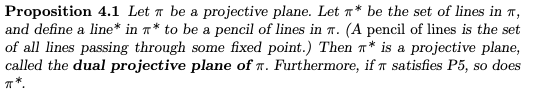 also constitute a projective plane, the 'dual' plane, called Pi*. I've